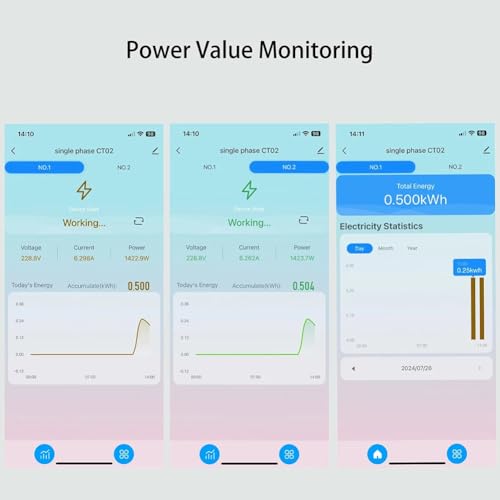 Die Handy-App-Steuerung ermöglicht es dir, in Echtzeit Leistung, Stromstärke, Spannung, Leistungsfaktor und Frequenz des Kanals für Vorwärts- und Rückwärtslauf anzuzeigen. Diese detaillierten Informationen helfen dir, das Verhalten deiner elektrischen Geräte besser zu verstehen. Laut Produktbeschreibung bietet das Gerät eine hochpräzise Messung und eine Echtzeitüberwachung von Spannung, Strom und Leistung jedes Kanals bei der Erzeugung und dem Verbrauch von Kilowatt.