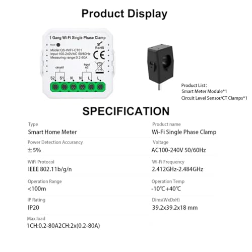 Fragen und Antworten zu ISTOVO Tuya WiFi Smart Meter Tuya WiFi Smart Meter Current Transformator Sensor Clamp Statistician für Elektrische Beleuchtung Solar KWH Monitor 1CT