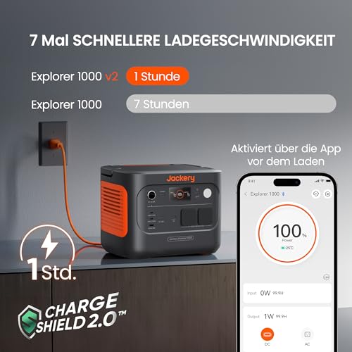 - Wie schnell lädt sich die Jackery Explorer 1000 v2 auf?