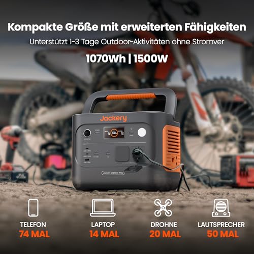 Fragen und Antworten zu Jackery Solargenerator 1000 v2 mit 100W Solarpanel, 1070Wh LiFePO4 Tragbare Powerstation, 1500W AC/100W USB-C Ausgang, 1 Std. Schnellladung für Outdoor, Off-Grid, RV, Notfall