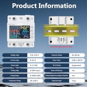Ein besonderes Merkmal dieses Stromzählers ist sein eingebauter Schutzmechanismus. Bei Überspannung, Unterspannung oder Überstrom unterbricht er die Stromversorgung, um deine angeschlossenen Geräte vor Schäden zu bewahren. Du kannst den Überspannungs- und Unterspannungsbereich individuell einstellen, um den Schutz optimal an deine Bedürfnisse anzupassen. Die integrierte Sicherheitsschutztür verhindert, dass Kinder oder Haustiere versehentlich mit den Kontakten in Berührung kommen.
