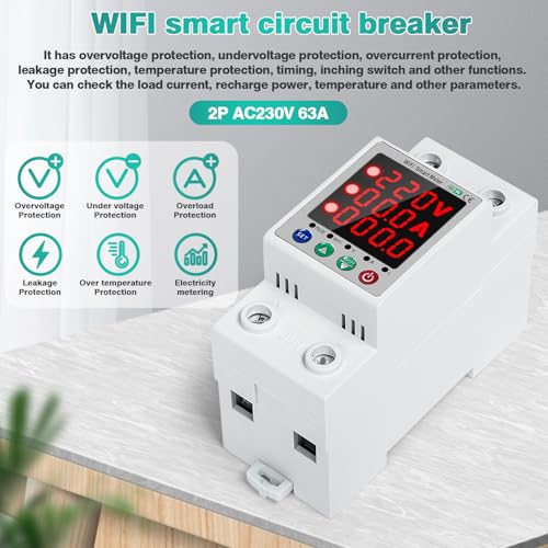 Produktbeschreibung: Jadeshay Stromzähler Hutschiene, 2P Smart Meter Intelligenter Leistungsschalter Energiezähler mit Über Unterspannungsschutz, Überstromschutz, Leckageschutz und Timerfunktion 63A AC230V