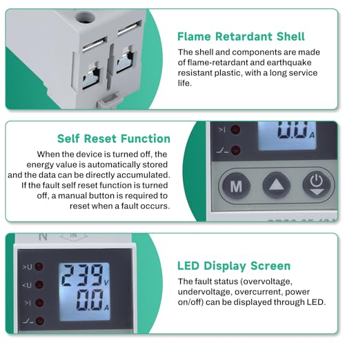 Fragen und Antworten zu Jadeshay Stromzähler Hutschiene, 40A Überspannungsschutz Smart Meter Überstrom- und Unterspannungsschutz mit LED-Digitalanzeige, Selbstrückstellfunktion 2P AC220V
