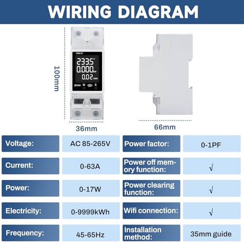 Fragen und Antworten zu Jadeshay Stromzähler Hutschiene, WiFi Smart Meter LCD Digital Amperemeter Voltmeter Stromverbrauchsmesser Kwh Zähler 63A AC85-265V