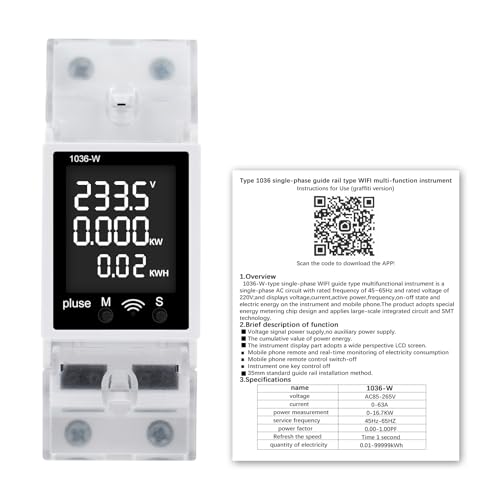 Der Jadeshay Stromzähler ist ein 6-in-1 Digital Amperemeter Voltmeter, das dir eine umfassende Übersicht über deine elektrischen Parameter bietet. Dieses multifunktionale Instrument ist ideal, um Spannung, Strom, Leistung, Energie, Leistungsfaktor und Frequenz gleichzeitig auf einer einzigen Schnittstelle anzuzeigen. So hast du alle wichtigen Messwerte im Blick und kannst deinen Energieverbrauch besser verstehen. Das Gerät ist für die Montage auf einer Hutschiene konzipiert und somit einfach in bestehende Installationen zu integrieren.