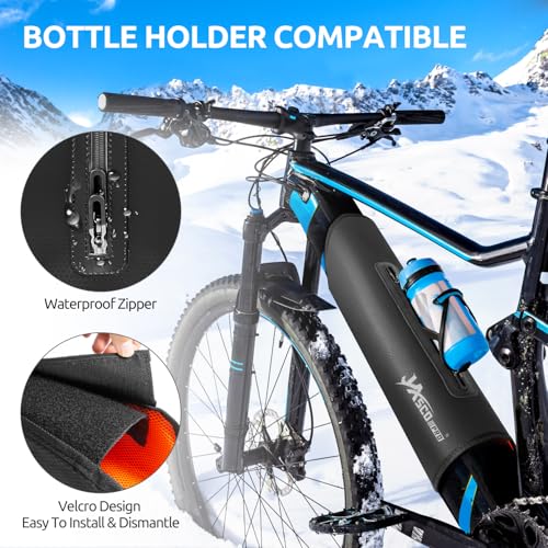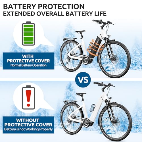 Produktbeschreibung: JASCOPRO E-Bike Akku Schutzhülle, Fahrrad Akku Abdeckung für 28-43cm Rahmenumfang, Ebike Akkuschutz Thermoschutzhülle Schutz vor Kälte und Schmutz, Flaschenhalter Kompatible, Abnehmbar & Waschbar
