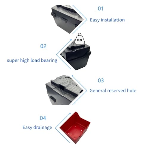 Die starke Kunststoffkonstruktion verspricht eine längere Lebensdauer im Vergleich zu Stahlgehäusen. Das ergonomische Design ermöglicht eine werkzeuglose Installation und die Anti-Beschichtungs-Eigenschaften tragen zur Widerstandsfähigkeit bei. Dieses Batteriegehäuse schützt deine Batterien zuverlässig bei regnerischen Fahrten, auf staubigen Strecken oder in anspruchsvollem Gelände. Es ist somit ideal für Roller, Dirt Bikes und andere Explorationsfahrzeuge im Freien geeignet. Es bietet eine stabile Batteriespeicherung während deiner täglichen oder längeren Reisen.