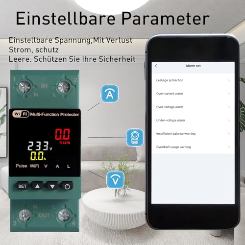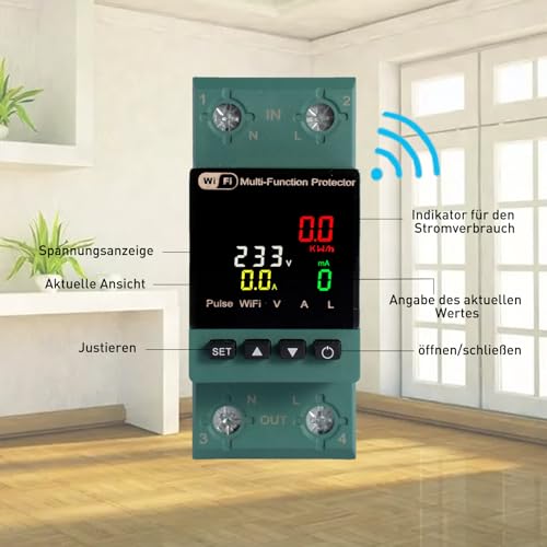 Besonders praktisch ist die WLAN-Funktion: Nach der Verbindung mit deinem WLAN-Netzwerk kannst du den Stromzähler über die TUYA App auf deinem Smartphone steuern. Du kannst den Schalter aus der Ferne ein- und ausschalten, den Stromverbrauch in Echtzeit überwachen und sogar Timer-Funktionen nutzen, um die Stromversorgung bestimmter Geräte zu bestimmten Zeiten zu planen. Du hast auch die Möglichkeit, den Energieverbrauch nach Tag, Monat und Jahr einzusehen, um deinen Stromverbrauch besser zu verstehen und zu planen. Zusätzlich bietet der Stromzähler einstellbaren Überspannungs-, Unterspannungs-, Überstrom- und Leckstromschutz.