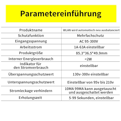 Produktbeschreibung: JOYELEC Smart WLAN Stromzähler Hutschiene 1 Phasig 63A AC230V Amperemeter Voltmeter WIFI Fernbedienung Wechselstromzähler KWh Zähler Digitaler Energiezähler Strommessgerät