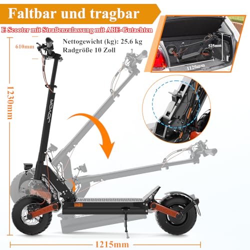 Produktbeschreibung: JOYOR S5 E Scooter mit Straßenzulassung, Reichweite 35-50 KM, 48V13AH-Batterie, Stoßdämpfung der Vorder- und Hinterradaufhängung, Faltbarer Elektroroller, 10-Zoll-Offroad-Reifen
