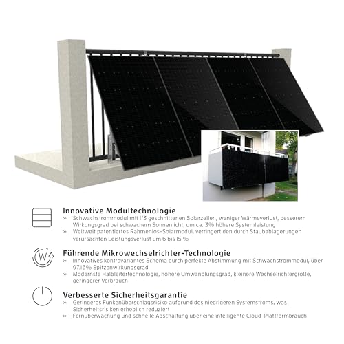 Im Vergleich zu anderen Balkonkraftwerken zeichnet sich dieses System durch seine Plug-and-Play-Funktionalität und die einfache Installation aus. Viele ähnliche Produkte erfordern einen höheren Montageaufwand oder bieten keine App-Steuerung. Auch der hohe Wirkungsgrad der Solarmodule, selbst bei schwachem Licht, kann ein entscheidender Vorteil sein. Achte bei der Auswahl auf wetterbeständige Materialien und einen integrierten Überspannungsschutz.