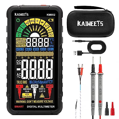 Fragen und Antworten zu KAIWEETS Multimeter mit 6000 Zählungen, Wiederaufladbares Digitalmultimeter mit True RMS Auto-Range, Intelligentes Strommessgerät misst Spannung, Strom, Widerstand, Durchgang, Frequenz KM602