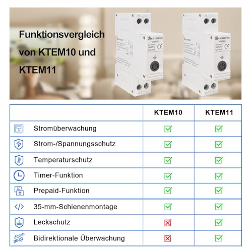 Fragen und Antworten zu KETOTEK Smart Bidirektionaler Stromzähler Hutschiene Digitaler 1 Phasig Energiezähler KWH Zähler DIN Rail Stromverbrauchsmesser WiFi Stromüberwachung Mit Zeitschaltuhr, Überlastschutz