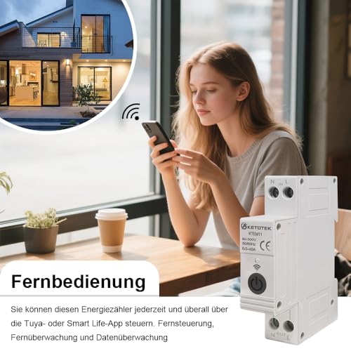 Produktbeschreibung: KETOTEK Smart Bidirektionaler Stromzähler Hutschiene Digitaler 1 Phasig Energiezähler KWH Zähler DIN Rail Stromverbrauchsmesser WiFi Stromüberwachung Mit Zeitschaltuhr, Überlastschutz