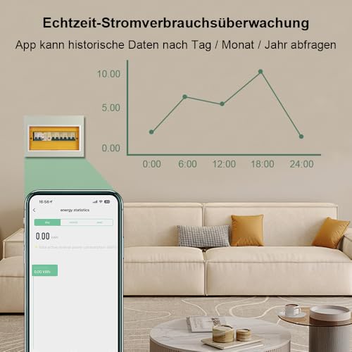 Über die zugehörige Smart Life/Tuya App kannst du in Echtzeit verschiedene Parameter wie Wirkleistung, Strom, Spannung und Leistung überwachen. Außerdem hast du Zugriff auf eine detaillierte Historie deines Stromverbrauchs – aufgeschlüsselt nach Tagen, Monaten und Jahren. Ein weiteres Highlight ist die Fernsteuerungsfunktion: Du kannst den Zähler über die App fernschalten und Zeitpläne erstellen. Dank der Kompatibilität mit Alexa und Google Assistant ist sogar eine Sprachsteuerung möglich. Die integrierte Zeitschaltuhr ermöglicht es dir, Geräte automatisch ein- und auszuschalten, und der eingebaute Überlastschutz sorgt für zusätzliche Sicherheit.