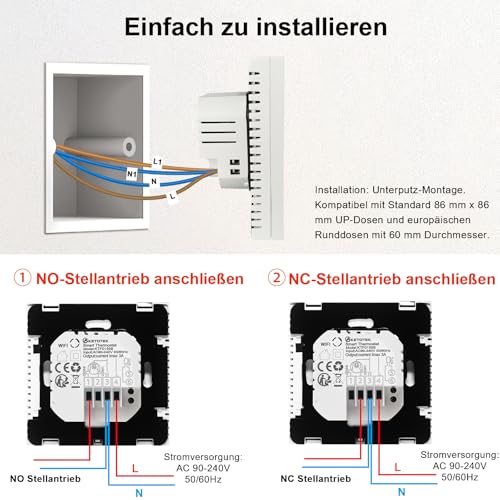 Fragen und Antworten zu KETOTEK Smart Thermostat Fussbodenheizung Wasser 3A 230V WLAN Kompatibel mit Alexa, Raumthermostat Fußbodenheizung WiFi Programmierbar Unterputz Weiß mit Tuya/Smart Life APP