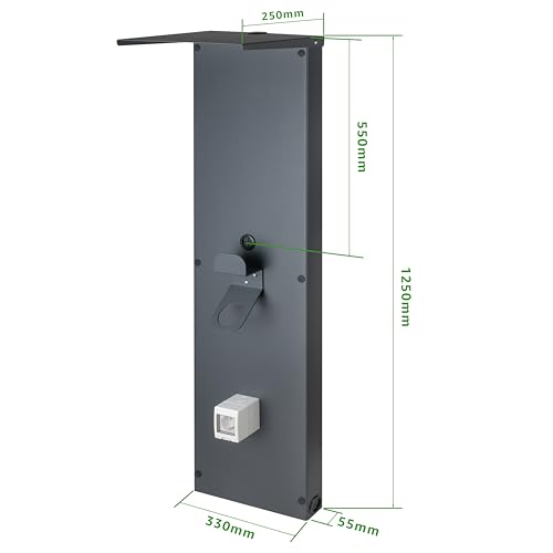 Fragen und Antworten zu Kreainvent Universal-Wallbox-Säule aus Aluminium für stabile Installation der Ladestation und organisierte Ladestelle für E-Fahrzeuge Fassadenwandplatte für Wallbox (125x33x25 cm, Mit Dach)