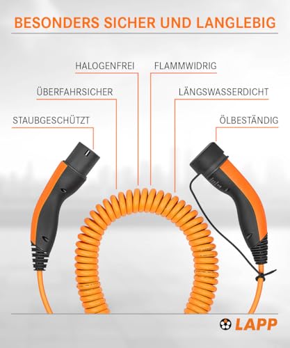 Fragen und Antworten zu Lapp Mobility Typ 2 Ladekabel 11 KW/Spiralkabel / 20 A / 3-Phasig/E-Auto Ladekabel/Mode 3 / 5m