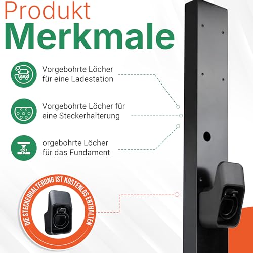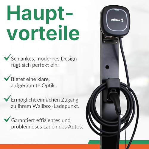 Produktbeschreibung: LDY Wallbox Standfuß für Wallbox Pulsar Plus, Freistehende Installation für Einfahrt oder Parkplatz, Für den Außenbereich, Metall Standfuß mit Steckerhalter