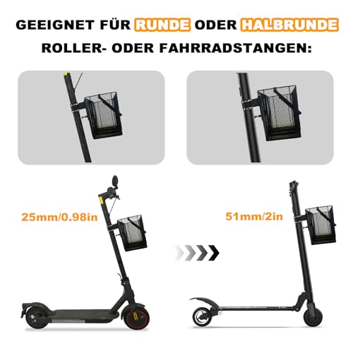 Fragen und Antworten zu LEFELWEL E Scooter Korb, Fahrradkorb Vorne, Schnellspanner Abnehmbare E Scooter Korb Vorne, Tragkraft 15kg, Einfache Montage und Portabilität, 26cm D x 16,5cm W x 23cm H