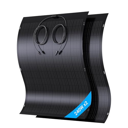 Fragen und Antworten zu LIONSHEE 480W Flexibel Solarpanel Kit, 2X 240W Monokristallines Flexibles Solarmodul, IP67, Solarzelle Photovoltaik Off Grid, für Wohnmobil, Auto, Schuppen, Dach, Boot, Balkon, 12V Batterien