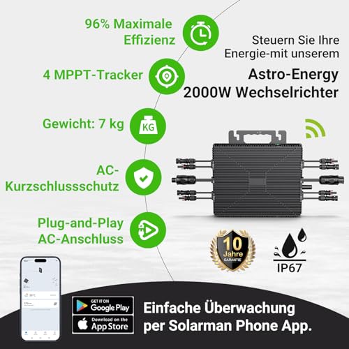 Fragen und Antworten zu LIONSHEE Mikrowechselrichter 2000W, Wechselrichter Balkonkraftwerk mit WLAN, Plug & Play, App Steuerung, 5M AC-Kabel, PV-Wechselrichter, MPPT Integrierter