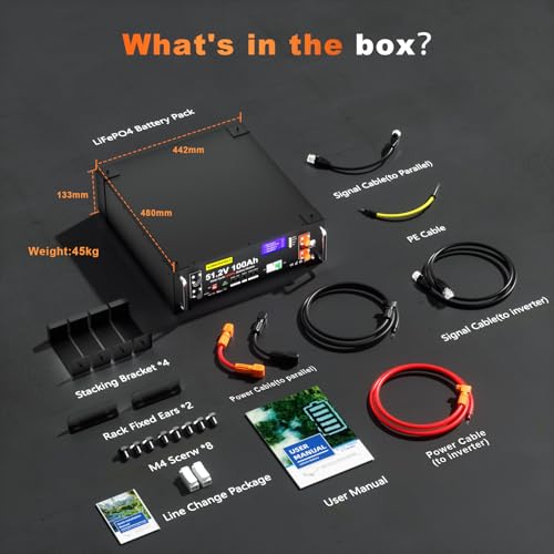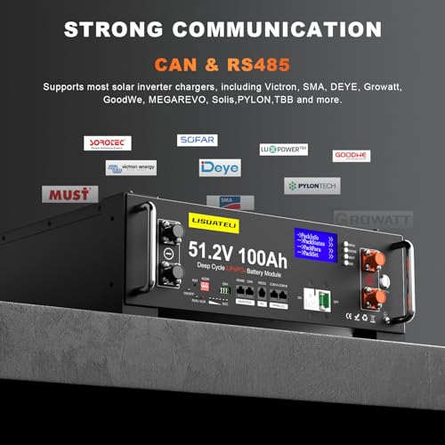 Fragen und Antworten zu LISUATELI 48V 100Ah LiFePO4 Lithium Batterie mit 100A BMS, 5.12KWh 48V Lithiumbatterie Serverschrank Solarbatterie für Solaranlage Komplettset, Photovoltaikanlage,Wohnmobil, Energiespeicher