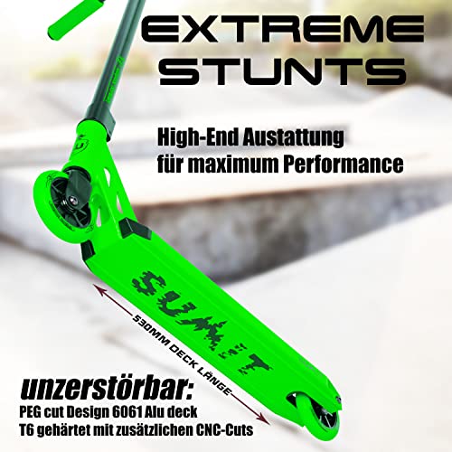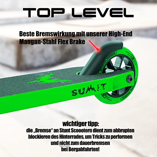 Fazit zu Longway Stunt Scooter – Summit – High End Profi StuntScooter, 6061 T6 Alu, ABEC 9 Kugellager, 110mm Wheels mit Alu Core, kickscooter, Funscooter, Roller, Trick Scooter für Kids, Teens und Pros, Grün