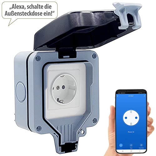 Fragen und Antworten zu Luminea Home Control WLAN Aussensteckdose: Outdoor-WLAN-Aufputzsteckdose, Sprachsteuerung, Verbrauchsmesser, App (Outdoor Steckdose, Steckdosen mit Zeitschaltuhr, Weihnachtsbaumbeleuchtung)