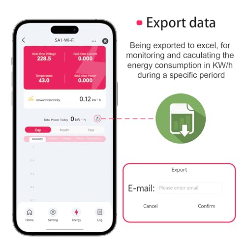 - Echtzeitverfolgung des Stromverbrauchs in Kilowattstunden pro Stunde, täglich, monatlich und jährlich.