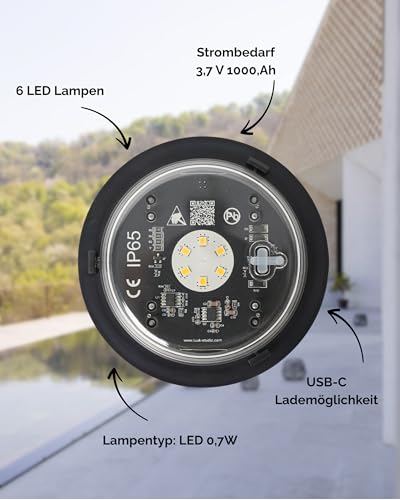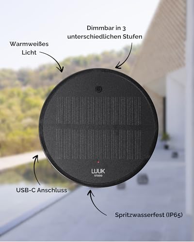 Fragen und Antworten zu LUUK Studio Outdoor Solarmodul mit langer Leuchtdauer, IP65, kabellose Tischleuchte, aufladbar via USB-C und Solar, warmweißes Licht, Boho Stil für Balkon, Terrasse