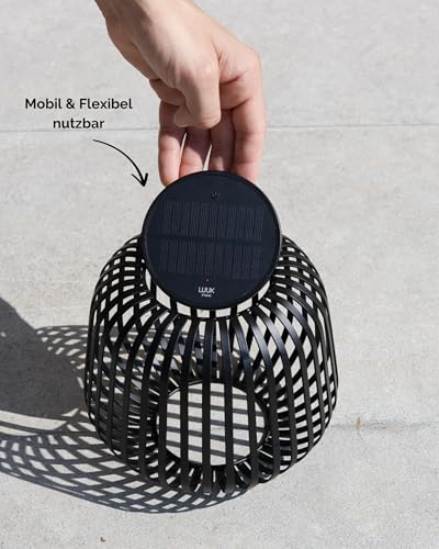 Produktbeschreibung: LUUK Studio Outdoor Solarmodul mit langer Leuchtdauer, IP65, kabellose Tischleuchte, aufladbar via USB-C und Solar, warmweißes Licht, Boho Stil für Balkon, Terrasse