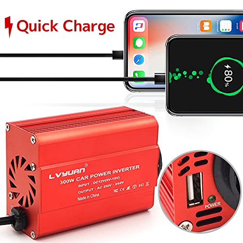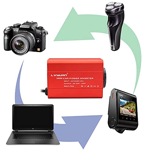 Fragen und Antworten zu LVYUAN 300W Wechselrichter DC 12 V auf 230V AC Spannungswandler Auto Konverter mit Dual USB Ports & EU Steckdosen Stromumwandler, Rot Aluminiumlegierung Körper