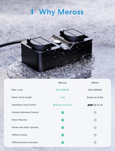 Im Vergleich zu herkömmlichen Außensteckdosen bietet die Meross WLAN Steckdose Outdoor den Vorteil der intelligenten Steuerung und Stromverbrauchsmessung. Während viele andere Produkte lediglich als einfache Verlängerung dienen, ermöglicht diese Steckdose die Überwachung und Automatisierung Deiner Geräte. Andere smarte Steckdosen bieten möglicherweise nicht die gleiche robuste, wasserdichte Bauweise oder die Möglichkeit, den Stromverbrauch so detailliert zu verfolgen. Auch die Kompatibilität mit verschiedenen Smart-Home-Systemen ist nicht selbstverständlich.
