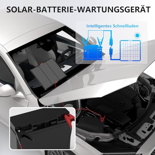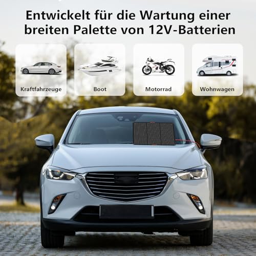 - Das Solarpanel ist geeignet für LiFePO₄, Lithium-Ionen und andere 12V-Batterien.
