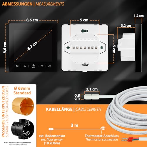 - Bitte beachte, dass das Thermostat als Unterputzregler konzipiert ist.