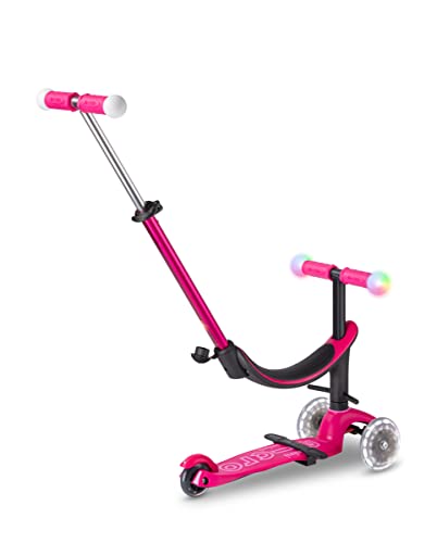 Fragen und Antworten zu Micro Mobility Micro mini2grow Deluxe Magic 4 in 1 mit LED Rollen, Schubstange, Laufrad Scooter, ab 12 Monaten in der Farbe Rose, MMD359