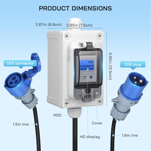 WSPIHO Stromzähler 3 Phasen CEE 32A Adapter IP44