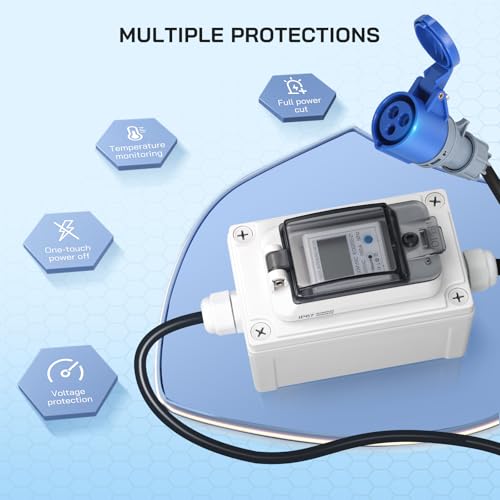 Mobile Stromzähler mit Steckdose unterscheiden sich hauptsächlich in ihrer maximalen Stromstärke, der Schutzart (z. B. Wasserdichtigkeit) und der Art der Anschlüsse. Einige Modelle sind nur für den Innenbereich geeignet, während andere, wie dieser hier, dank IP67 auch im Freien verwendet werden können. Die Kabellänge und die Verfügbarkeit einer Speicherfunktion bei Stromausfall sind weitere Unterscheidungsmerkmale.