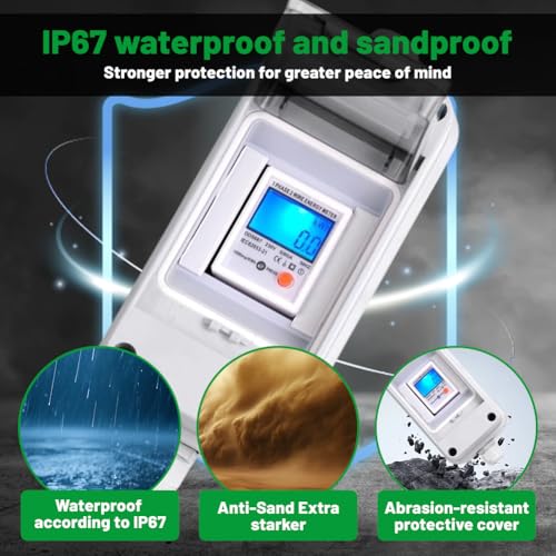 Fragen und Antworten zu Mobiler Digitaler Stromzähler 230V für Steckdose, Strommessgerät mit Reset, IP65 Wasserdicht Gehäuse, Gummischlauchkabel, tragbar für Wohnmobile, Elektrofahrzeuge, Smart Meter & Steckdose Stromzähler