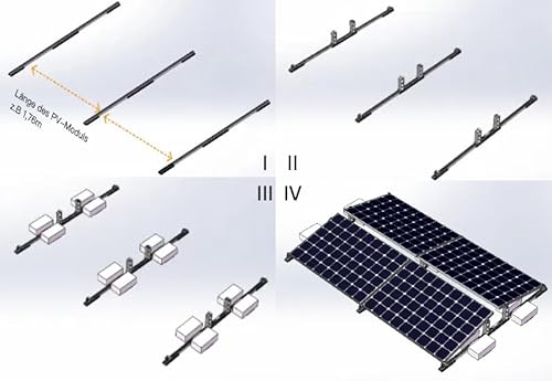 - Hochwertiges Aluminium-Befestigungssystem für 4 PV-Module mit stabiler Schienenkonstruktion