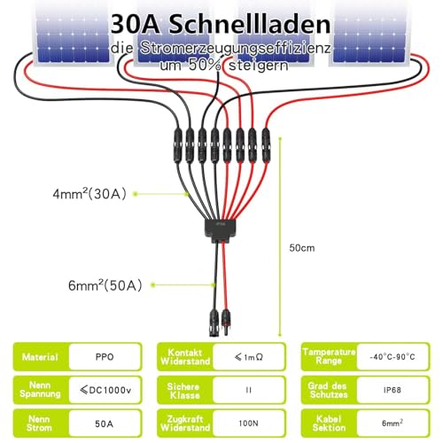 Fragen und Antworten zu MXRPV Solar-Anschlusskabel,Solar-Panel Y Zweig Parallelverbinder,30A 1000V 6mm² 2 bis 8 Splitter Solar-Panel-Steckverbinder Verlängerungskabel Solarkabel Stecker,Solarpanel-Anschlusskabel (2 bis 8)