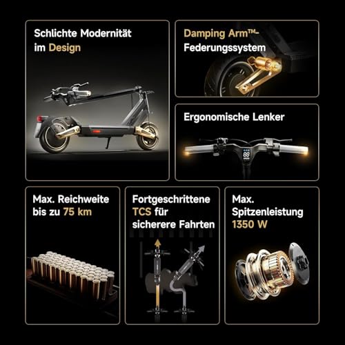 Produktbeschreibung: NAVEE ST3 Pro D E-Scooter TÜV-geprüft: Klappbarer Elektroroller 75km | Vierfachaufhängung-Federungssystem | 3-Fach Bremssystem, App-Steuerung & LED | mit Kabelschloss, IPX5 (StVZO)