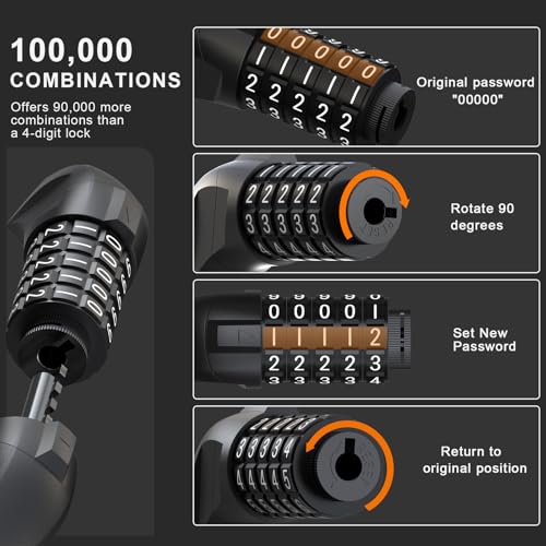 Produktbeschreibung: NextSeal E Scooter Schloss – Doppeltes Zahlenschloss mit 5-stelligem Code, 12 mm Dickes Kabel, 105 cm Länge – Ideal für E-Scooter, Fahrrad & Roller – Anti-Diebstahl Schloss, Zubehör für E-Scooter