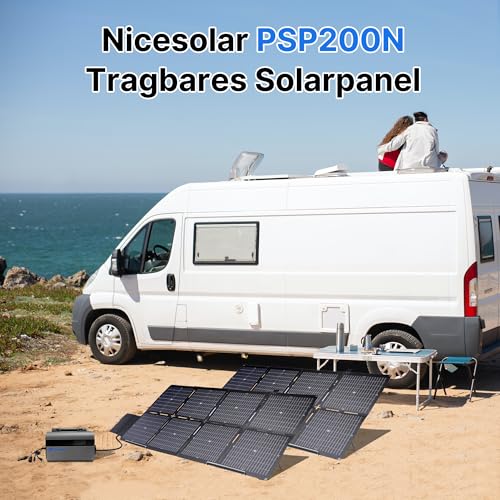 Mit dem Nicesolar Solarpanel Faltbar 200W hast du eine flexible und mobile Lösung zur Stromerzeugung. Es ist kompakt, tragbar und dank IP67-Technologie auch für den Außeneinsatz geeignet. So kannst du deine Powerstation, dein Handy oder Tablet auch unterwegs mit Sonnenenergie aufladen und bist unabhängiger vom Stromnetz – ideal für Camping, Reisen oder Notfälle.