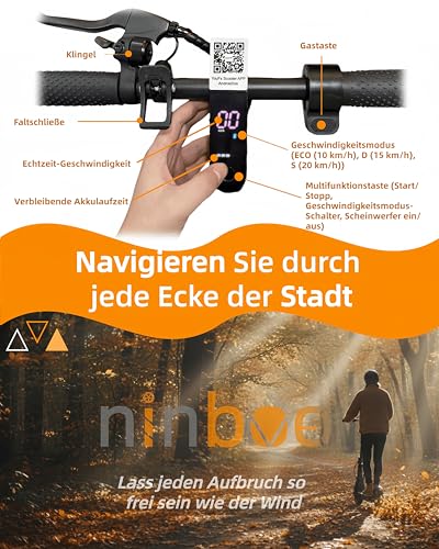 - Der ninboo N1 erreicht eine Höchstgeschwindigkeit von 20 km/h gemäß den deutschen Vorschriften.