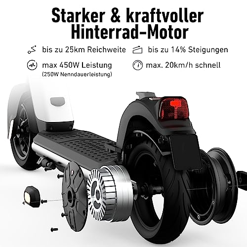 - Reichweite bis zu 25 km, maximale Geschwindigkeit 20 km/h
