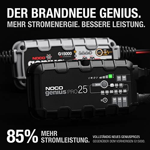 Produktbeschreibung: NOCO GENIUSPRO25: 25A 6V/12V/24V Profi-Batterieladegerät – Intelligenter Erhaltungslader, Entsulfator & Netzteil mit Überladeschutz & Temperaturkompensation – Für Blei- & Lithiumbatterien
