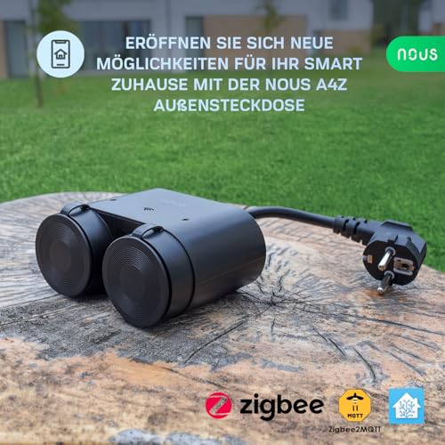 Fragen und Antworten zu Nous A4Z Zigbee Steckdose Outdoor – Aussensteckdose wasserdicht mit stromzähler. Alexa zubehör stecker 230V Tuya Smart Life Google Home Assistant mehrfachstecker schwarz matt 16A IP44 doppelsteckdose