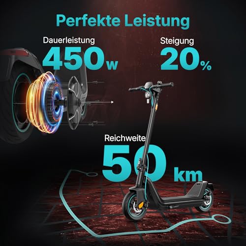 - Der E-Scooter hat 10,5-Zoll Luftreifen.